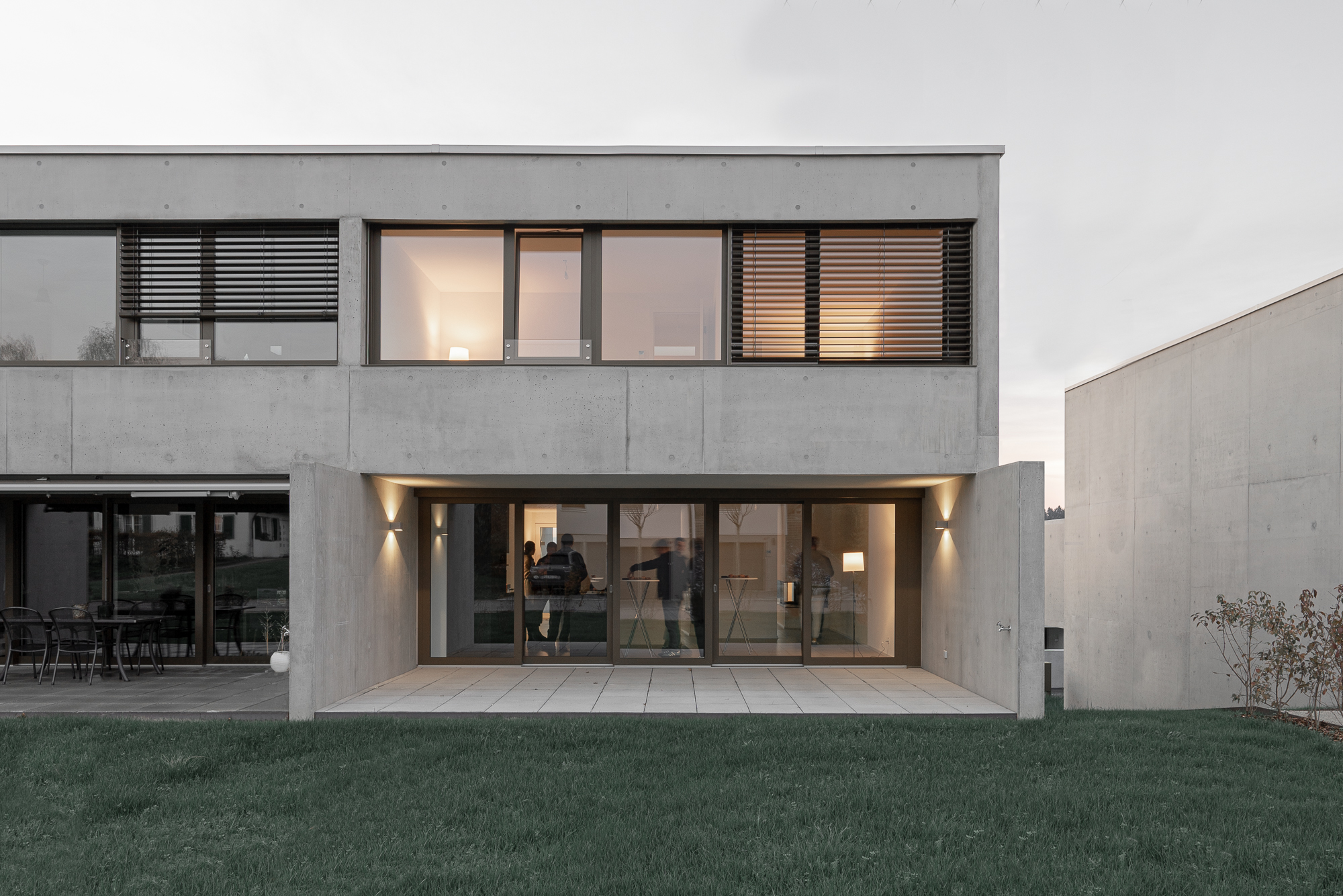 Die Ebene des Zugangsweges ermöglicht Zugänge und Garagen. Die Wohnräume verfügen über die nötige Privatsphäre und erstrecken sich über die Terrassen und Gärten.