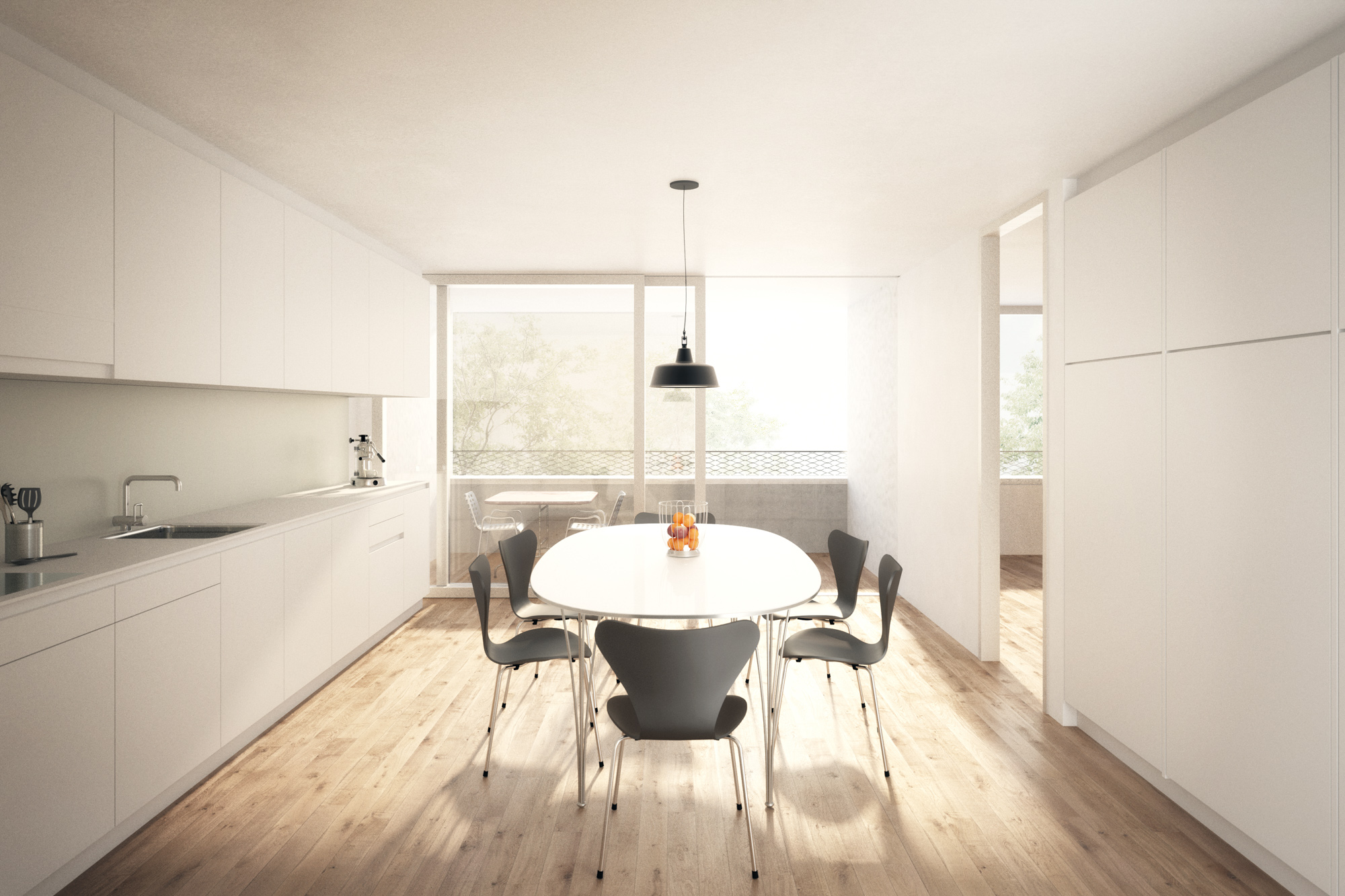 Die 2,5- bis 3,5-Zimmer-Wohnungen sind entweder durchgehend oder mit dem Vorteil einer doppelten Ausrichtung an den Enden der Gebäude. Der Ausdruck der Gebäude versucht sich in seiner Materialisierung und durch die horizontalen Linien der Fassaden in seinen Kontext zu integrieren.