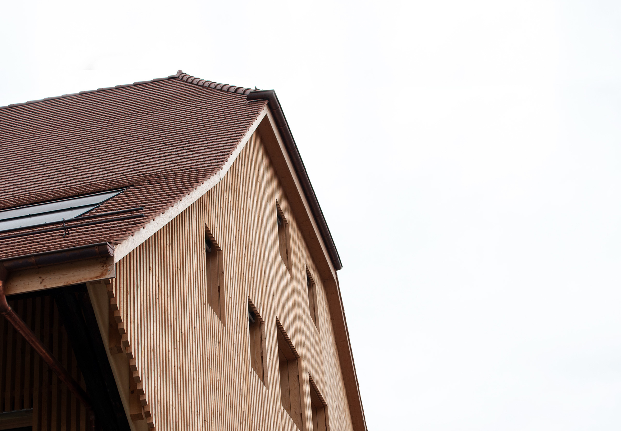 Das umgebaute Gebäude besteht im Wesentlichen aus Holz und behält seinen authentischen Charakter. Die Auswahl der Materialien ist Teil derselben Logik: Die vorhandene Gebäudestruktur verwerten und die Rohmaterialien übernehmen.