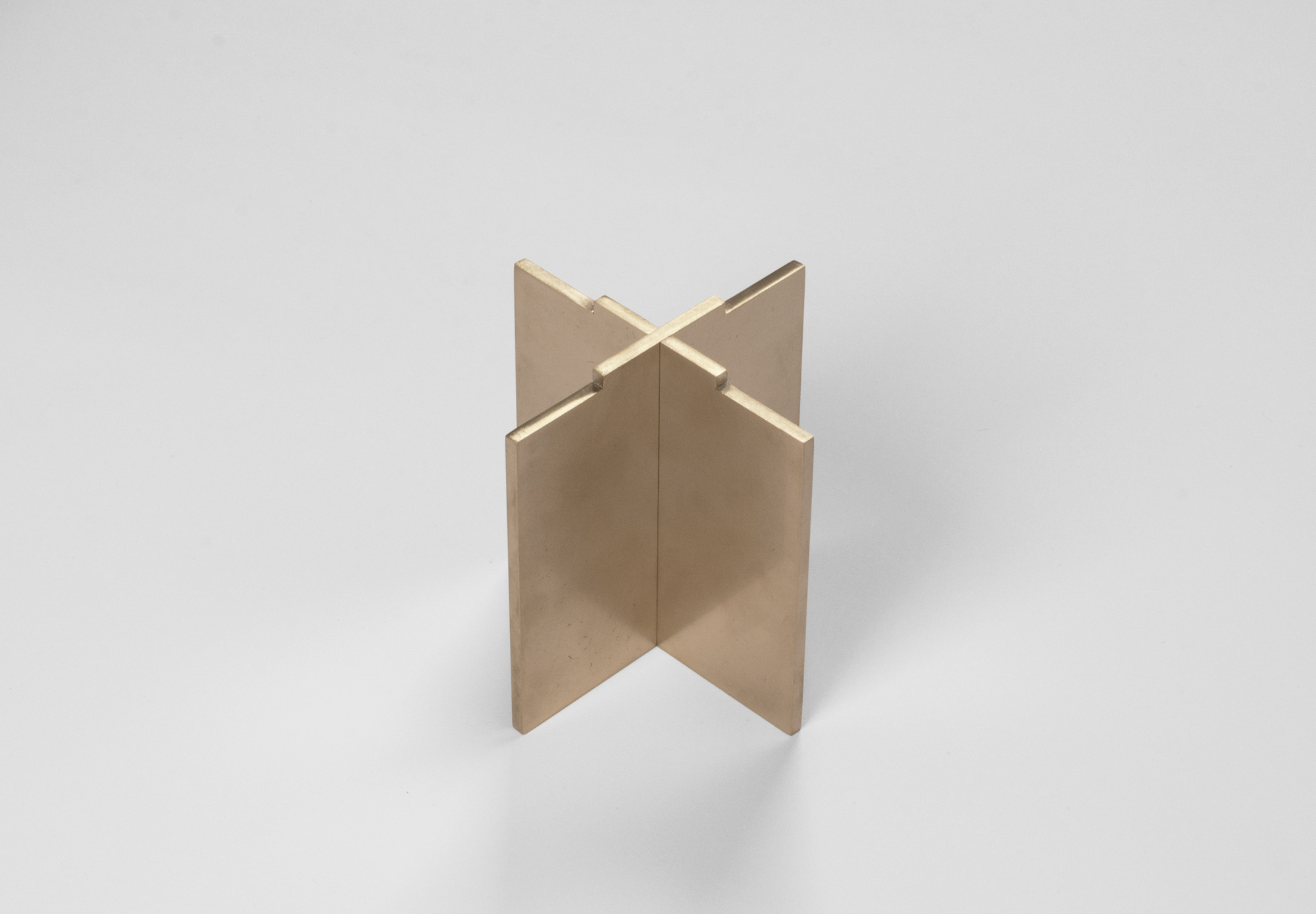Bronze ist ein edles und lebendiges Material, das diesem aussergewöhnlichen Objekt, das sich im Laufe der Jahre weiterentwickeln soll, Leben einhaucht. Die Bronzeplatten werden präzise ziseliert und anschliessend von Hand poliert. Schliesslich nimmt der Tisch durch einfaches Ineinandergreifen Gestalt an.