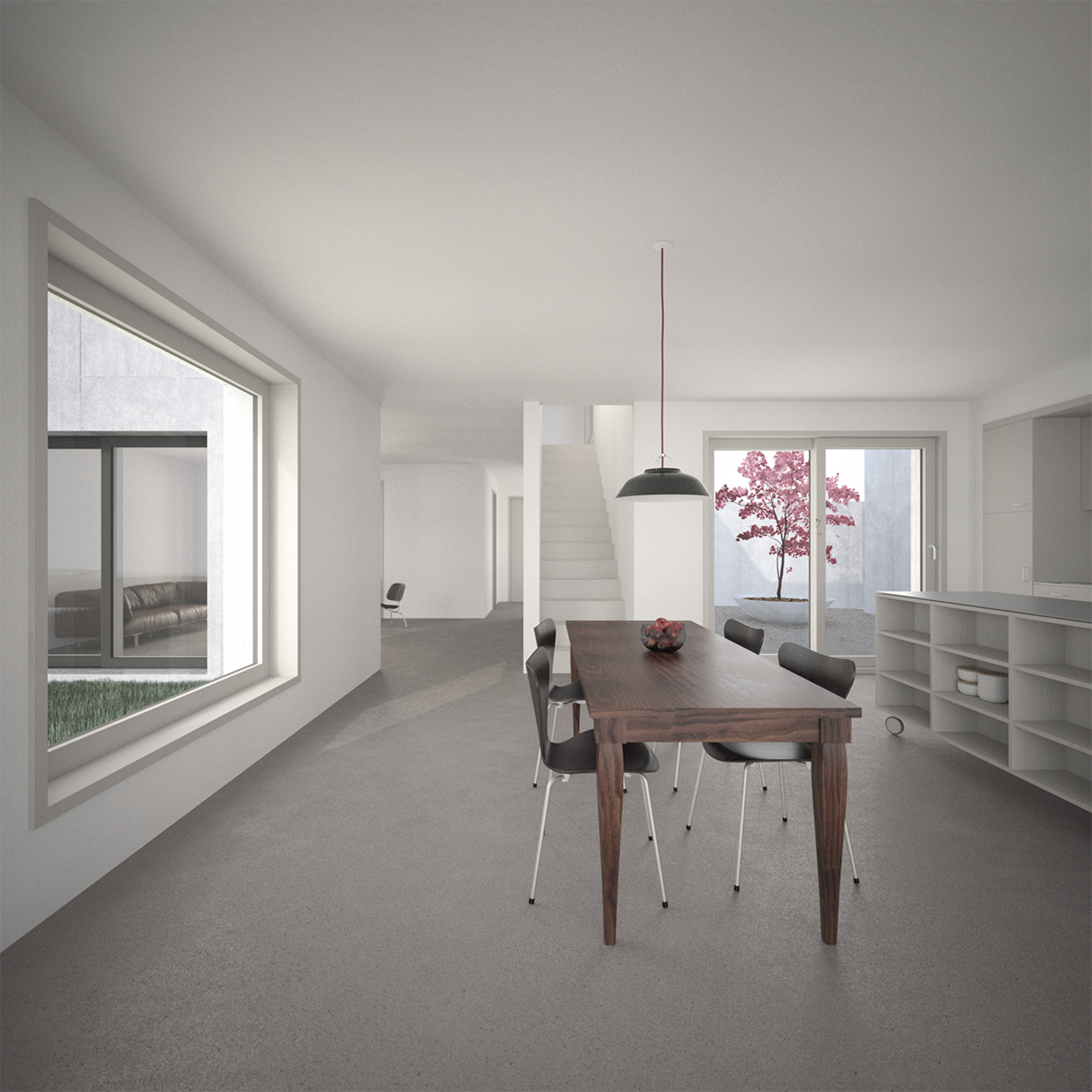 Le projet propose une densité particulière dans la disposition des volumes. Celle-ci permet de qualifier les espaces extérieurs, évitant ainsi les surfaces résiduelles. Un choix radical dans le positionnement des ouvertures permet de résoudre les questions de privacité.
