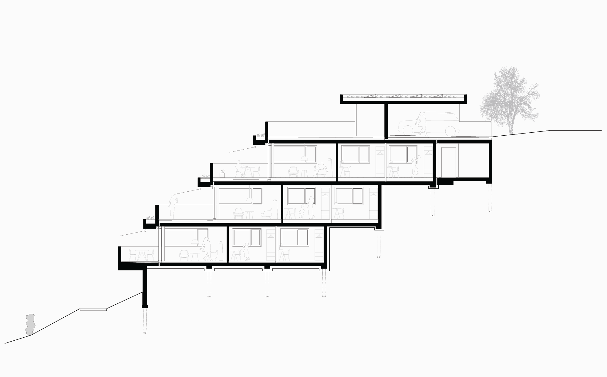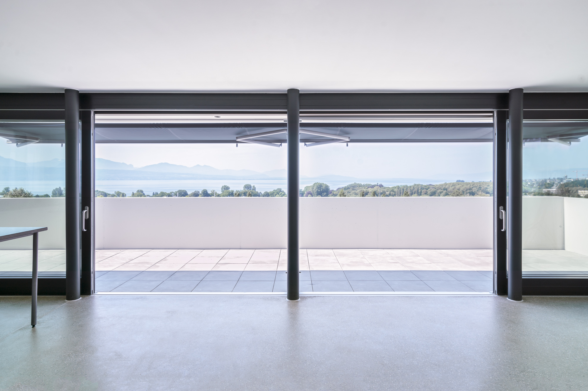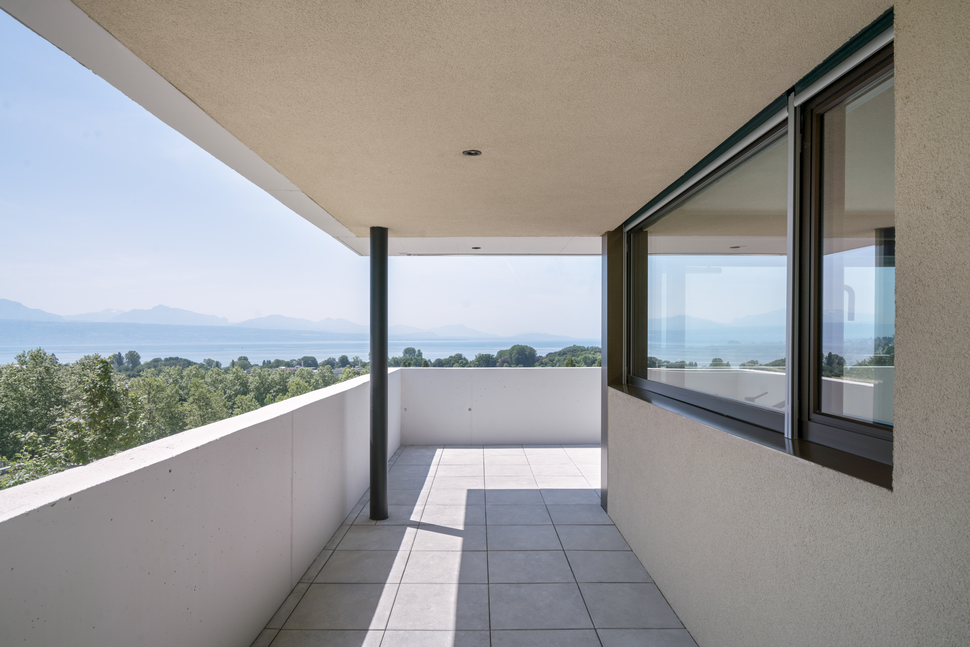 Face au lac et aux Alpes, 3 appartements en terrasses se nichent sur un coteau privilégié. L’implantation ainsi que la volumétrie de ce petit immeuble sont dictés par la topographie exigeante de la parcelle.