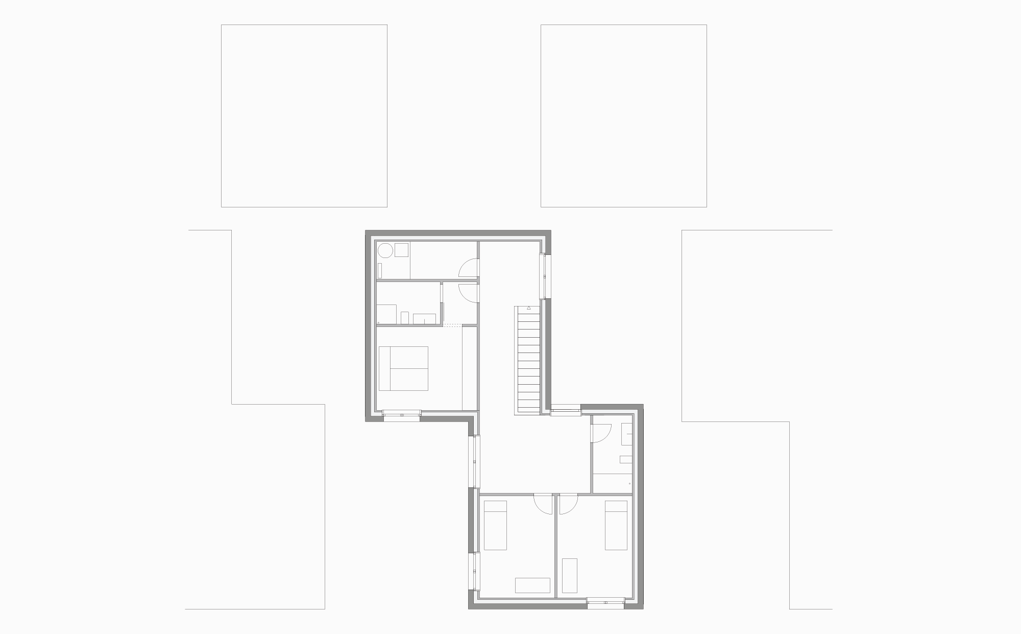 Le projet propose une densité particulière dans la disposition des volumes. Celle-ci permet de qualifier les espaces extérieurs, évitant ainsi les surfaces résiduelles. Un choix radical dans le positionnement des ouvertures permet de résoudre les questions de privacité.