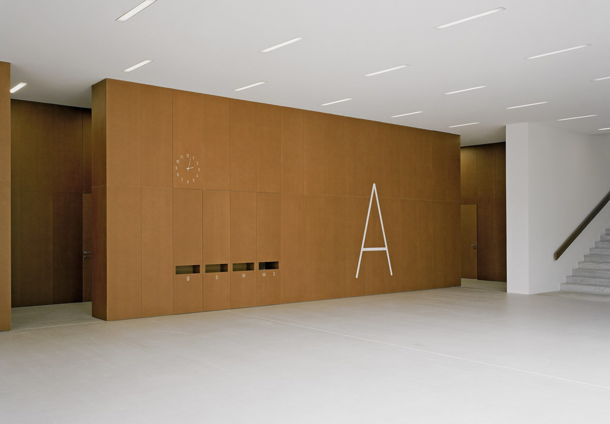Architecture intérieure modulable permettant un enseignement décloisonné. En ouvrant ou en fermant certaines portes coulissantes, les espaces d’enseignement sont redéfinis.